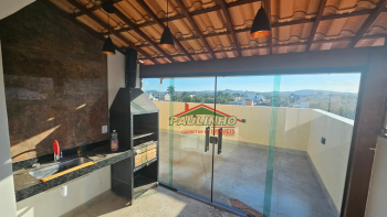 3 quartos sendo um suíte sala cozinha, banheiro social, cobertura com sala grande área gurmed com churrasqueira banheiro social área livre vista pra cidade
