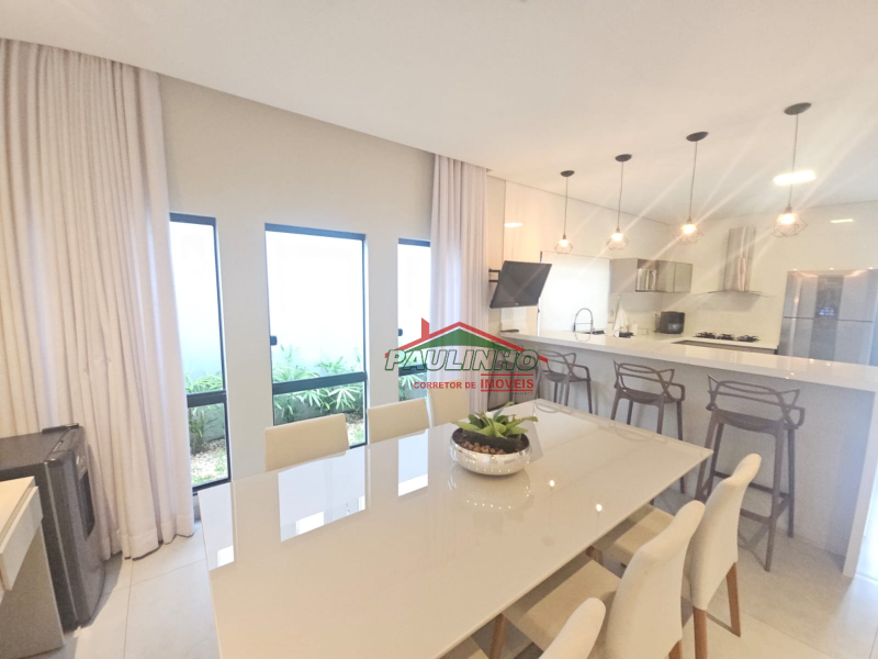 Viva o sonho nesta espetacular casa com projeto moderno e área total de aproximadamente 540m² no cobiçado bairro Jardim Arizona. Destaque para a imponente sala com pé direito duplo, que proporciona amplitude e iluminação natural, e a cozinha estilo americano totalmente integrada com a espaçosa sala de jantar, ideal para momentos de convívio. A residência conta com 3 quartos, incluindo uma suíte master com closet, e acabamentos de primeira linha, como bancadas e armários planejados em todos os ambientes. O generoso espaço nos fundos oferece infinitas possibilidades para criar sua área de lazer dos sonhos. Uma oportunidade única de adquirir um imóvel que une design, conforto e qualidade de vida.